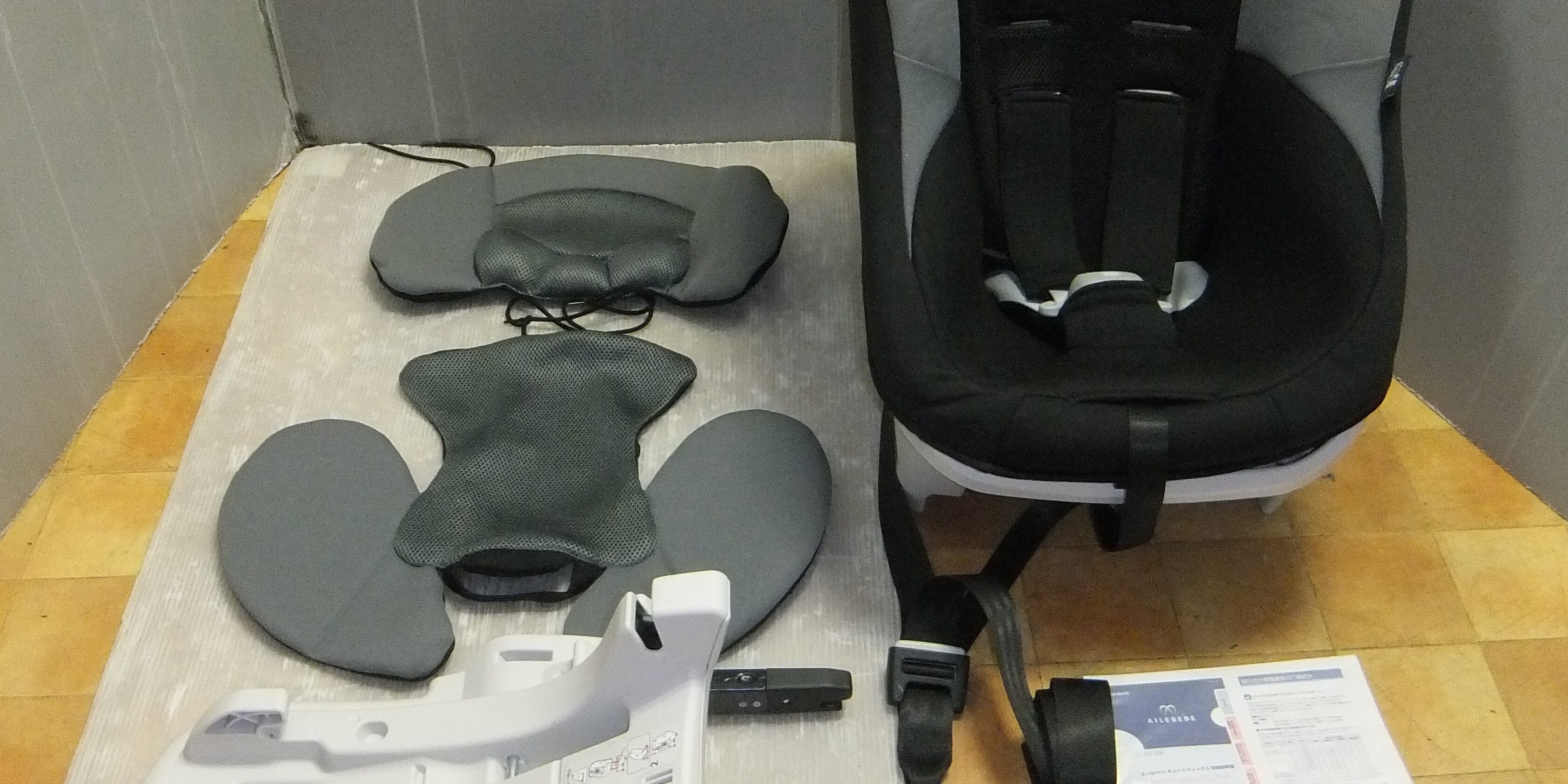●エールベベ・キュートフィックス、ISO FIX対応チャイルドシート。 本体、ベース、ママの手クッション2点、新品ガイドカップと取説のコピーになります。 生地もしっかりしており、全体的に綺麗な品です。 ●対象:新生児~4歳頃。後ろ向き使用、新生児~1歳半頃。前向き使用、9カ月~4歳頃。 ●ISO FIXで固定しますので、簡単、確実に固定できます。 新生児~4歳対応では、おそらく一番コンパクトと思われます。 別途トップテザーベルト(写真参照)で、更に室内のアンカーに固定しているのも特徴です。 ●サイズ:前向き:W430XD430XH630mm。後ろ向き:W430XD660XH460mm。 ●きれいですが、未使用品ではありませんので、ご理解頂き入札下さい。 ※ご自分の車に対応するか、念の為メーカーのホームページでご確認ください。 11,500円 Post navigationPreviousPrevious post:ベビー用品買取販売/キッズモール湘南茅ヶ崎/エールベベ・クルットNT2プレミアム/14,000円NextNext post:ベビー用品買取販売/キッズモール湘南茅ヶ崎/Janodジャノー木製キッチン/4,800円