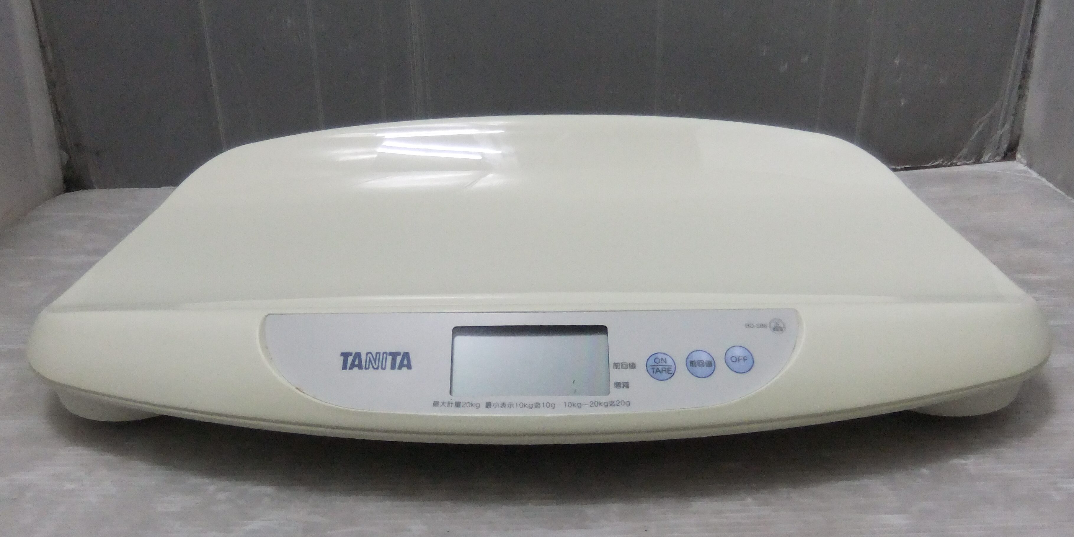 ■この度は、ごらん頂きありがとうございます。子供用品、衣類を中心にご案内しております。 ■チャイルドシート、ベビーカー、ラックなどのクリーニングサービスも有料で営業しております。 ●TANITAのデジタルベビースケールです。型式BD-586 ●最大計量:20kg 最小表示:0~10kgまで10g,10~20kgまで20g。 単三乾電池4本使用 D390XW580XH93mm ●きれいですが、未使用品ではありませんので、ご理解下さい。 箱に入れて発送しますが、箱は破れがあります。3,500円