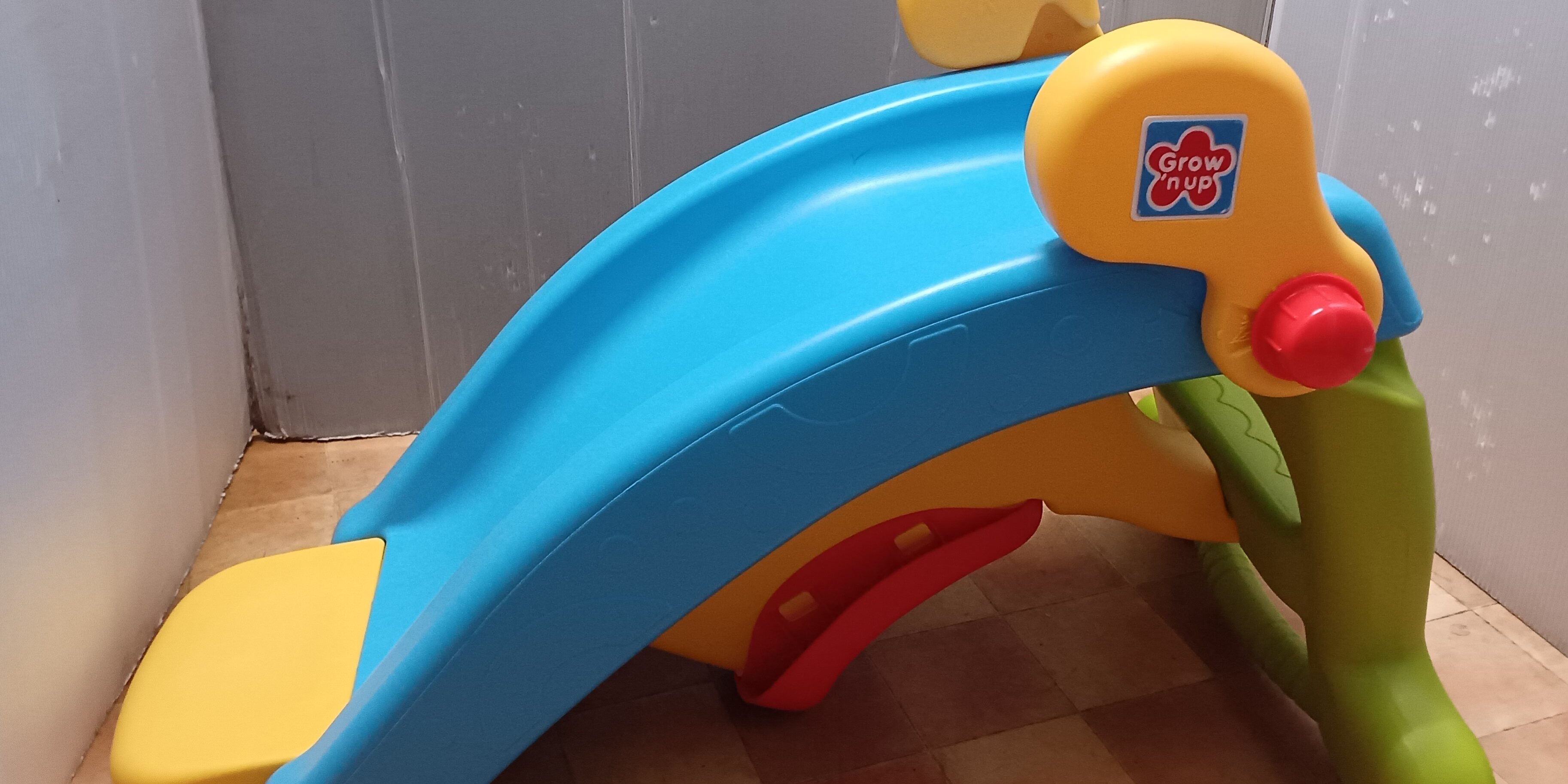 ■この度は、ごらん頂きありがとうございます。子供用品、衣類を中心にご案内しております。 ■チャイルドシート、ベビーカー、ラックなどのクリーニングサービスも有料で営業しております。 ●トイザらス購入のGROW’N UP製、滑り台と変身する乗用玩具です。 2年ほど前、購入後,試乗のみで、家庭内保管の品です。 ●滑り台として使用のほか、簡単に乗用玩具に変身できます。 本体のみになります。元箱に入れてお送りします。 ●サイズ:滑り台、約W83XD47XH50cm。滑り出す高さは,約37cm。3,800円