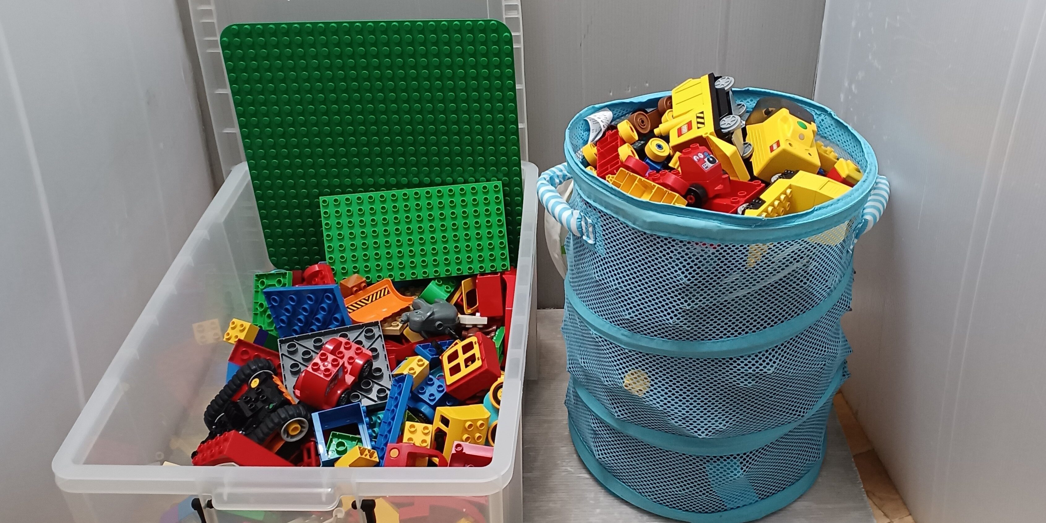 ■この度は、ごらん頂きありがとうございます。子供用品、衣類を中心にご案内しております。 ■チャイルドシート、ベビーカー、ラックなどのクリーニングサービスも有料で営業しており、出品商品も同様のクリーニング済みの品です。直ぐに安心してご利用頂けます。 ●1歳半から遊べる通常のLEGOよりは大きいサイズのものです。 ①幾つかのシーリーズが混じっており、かなりの量になります。duplo基礎板付き、箱は、収納用の市販ボックスになります。 乗り物や人間・動物・花のブロックなど多数入ってます。 ②トレインのミックスになります。動力車が3台(動きます)、連結車、踏切,高架、線路、等多数。 品物は、きれいな状態です。7,800円