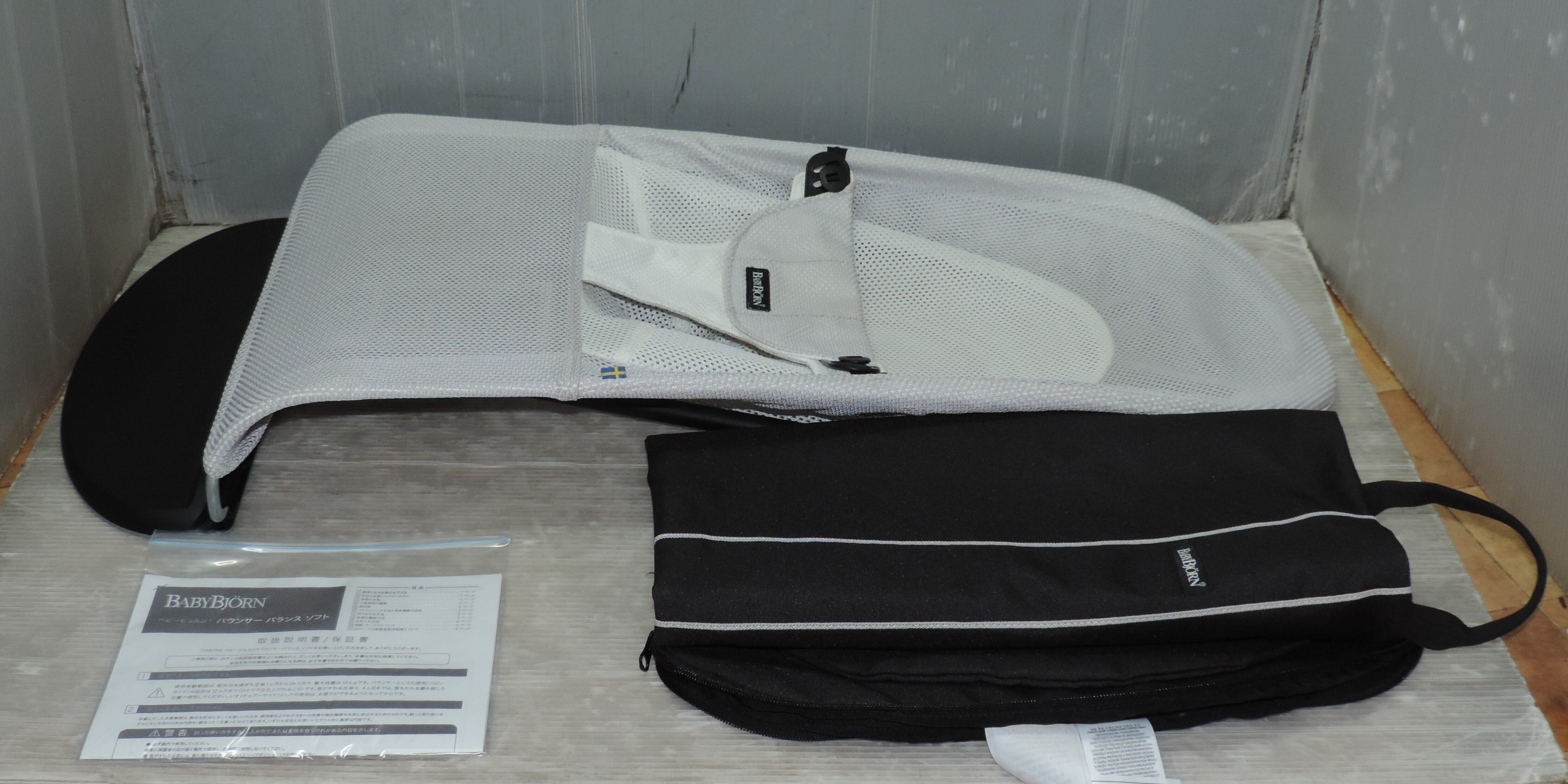 ■この度は、ごらん頂きありがとうございます。子供用品、衣類を中心にご案内しております。 ■チャイルドシート、ベビーカー、ラックなどのクリーニングサービスも有料で営業しており、出品商品も同様のクリーニング済みの品です。直ぐに安心してご利用頂けます。 ●ベビービョルンのベビーシッターバランスソフトAir。 バウンサー専用バッグです。 本体、バウンサー専用バッグと取説コピーになります。色は、シルバー/ホワイト。 ●対象:1カ月~2歳頃(13kg)。 洗濯済みできれいです、プラスチック部分もあまり傷はありません。 ●生地は、通気性に富んだ、メッシュのポリエステル100%素材。バッグの素材は、ポリエステル100%。 ●リクライニング調節3段階、①プレイポジション②レストポジション ③スリープポジション 9,000円