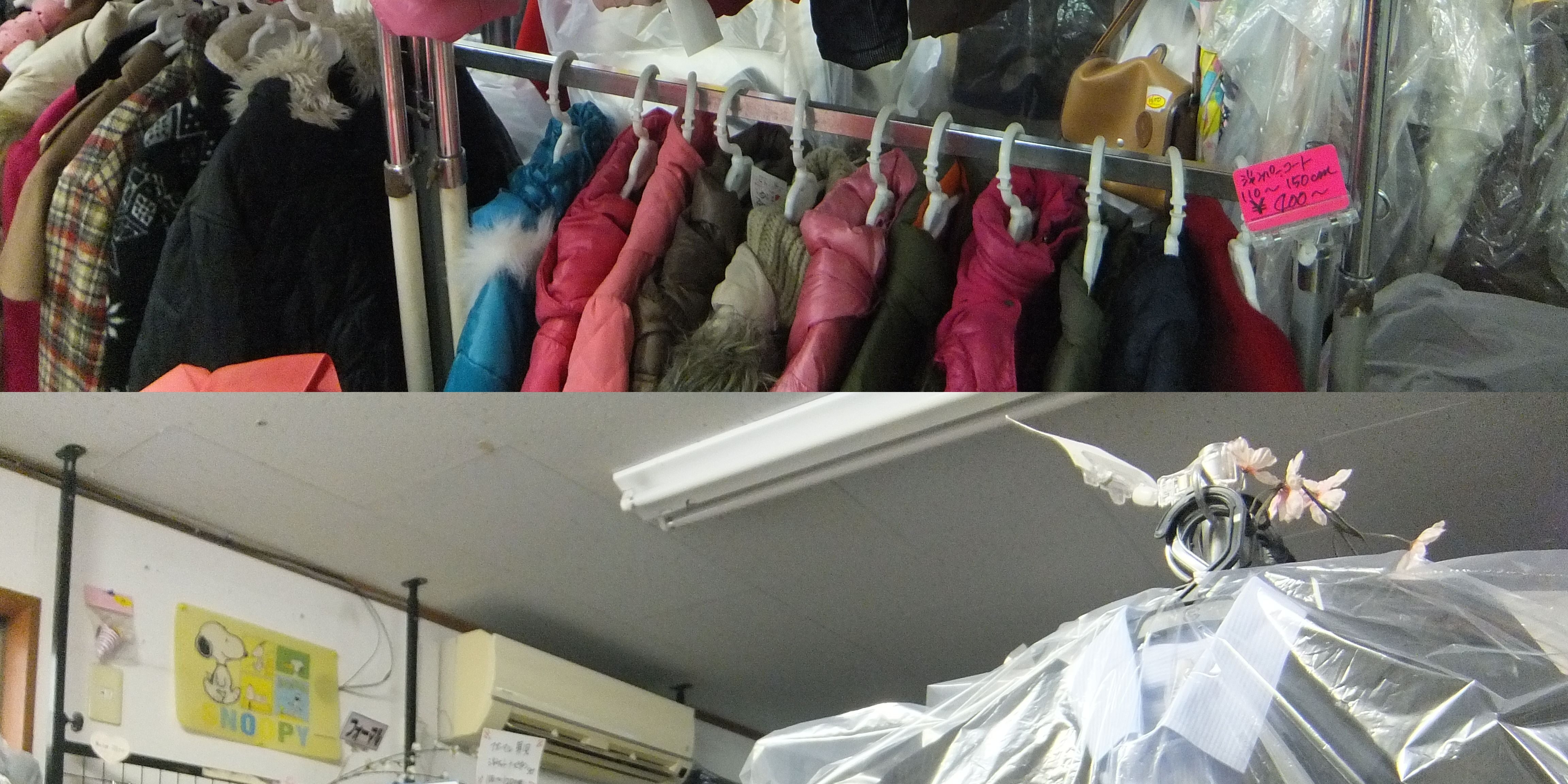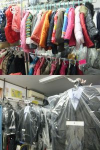 ジャンパーなど、冬のアウターも大量展示中。一般衣類1点10%引き~最大3点30%引き。チャイルドシートを除く用品は10%引き。