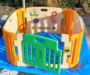 この度は、ごらん頂きありがとうございます。子供用品、衣類を中心にご案内しております。 ■チャイルドシート、ベビーカー、ラックなどのクリーニングサービスも有料で営業しており、出品商品も同様のクリーニング済みの品です。直ぐに安心してご利用頂けます。 ●jtc製造のベビールームです。プレイパネル1枚、ドアパネル1枚、他2枚とコーナーパネル4枚。 ※プレイパネルの電話機が付いておりません。 ●対象:6ヶ月~。 ●ドアは、Wロック。 ●サイズ:4枚とコーナーパネル4枚で正方形使用:約116X 116cm、高さ約61cm。 ●クリーニング済ですので、直ぐにご使用できます。傷は、少なめと思われます。 3,800円
