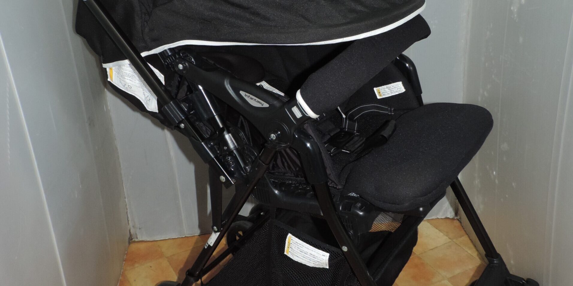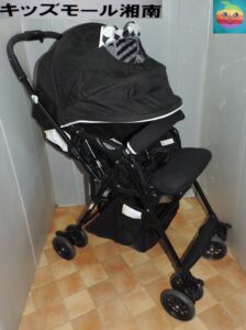 ●赤ちゃん本舗、オリジナルのデビューideaカエナ、A型ベビーカーです。本体、頭部クッションになります。色は、ブラック。