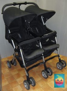 ●エアバギーココダブル、二人用ベビーカーです。本体、サンキャノピー、エアポンプ、未開封レインカバー、リストストラップ、ドリンクホルダー、ショッピングバスケットと購入時の付属品となっております。加えて、シートクッション綿の…