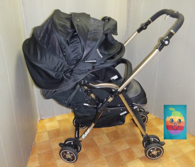 ●コンビのホワイトレーベル、ディアグラッセオート4キャス XB-600です。色の表示は、ブリーズブラック。 対象年齢:1ヶ月~36カ月、 洗濯済みで全体に綺麗です。幌の日焼けも感じず、 フレーム等の傷も目立ちません。 本…
